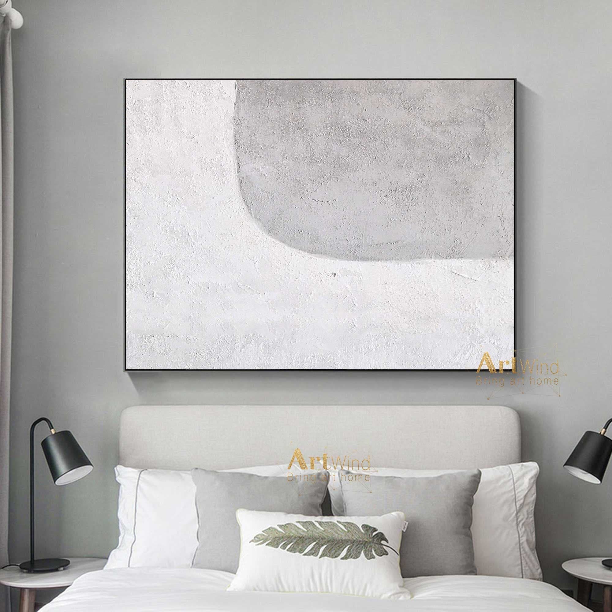 Huge Minimalist Abstract Painting White Modern Wall Art Grey Etsy